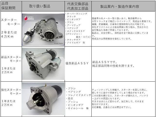 株式会社貴田商会はより良いリビルト商品を販売しています。